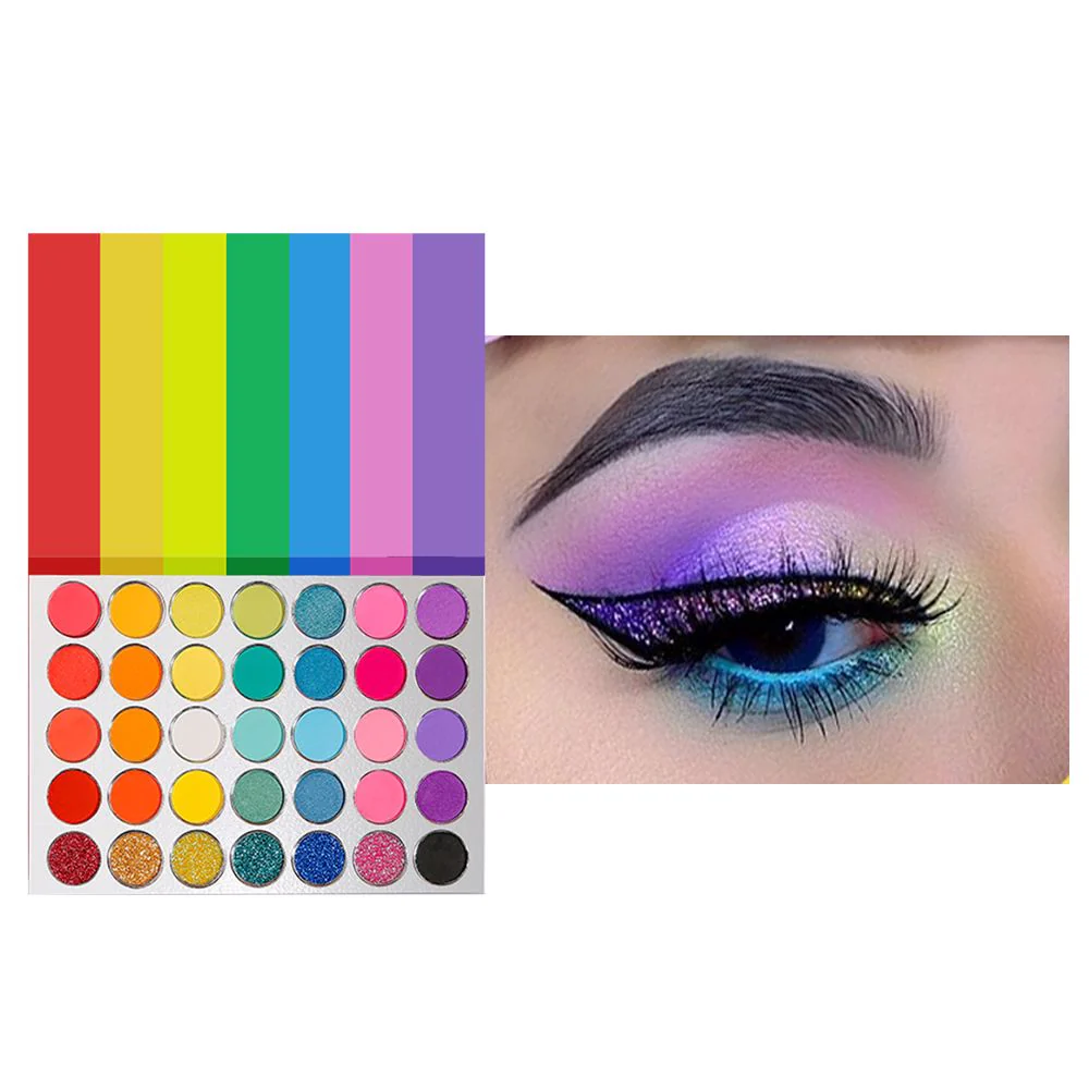 Perfect for colorful glam, festival looks, cut creases, soft glam, smoky eyes, and artistic expression, the 35 Colors Rainbow Palette gives you complete freedom to explore every makeup style imaginable.