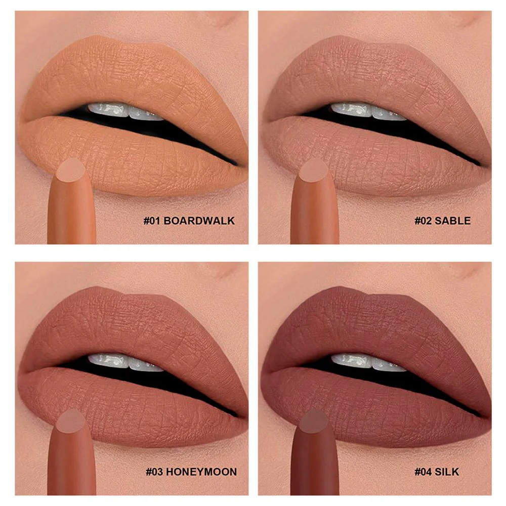 The combination of kaolin, silica, and microcrystalline wax creates a soft-focus blurring effect, smoothing the appearance of lip texture while delivering a plush, velvety matte.