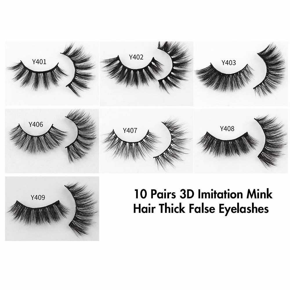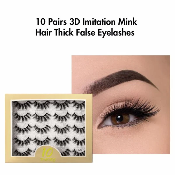 A set of 10 pairs of lightweight, 3D imitation mink lashes offering soft volume, natural curl, and long-lasting comfort. Flexible, hypoallergenic, and reusable for any look—from soft glam to bold drama.